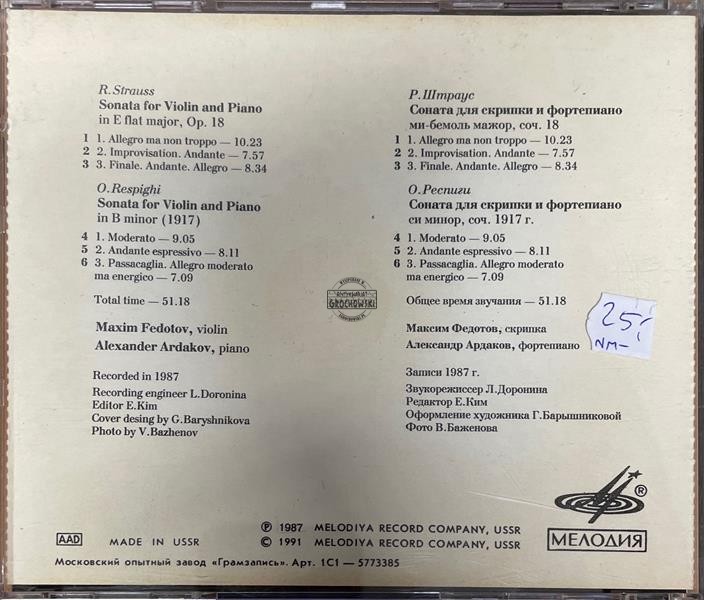 Александр Ардаков, Максим Федотов, Richard Strauss, Ottorino Respighi – Р. Штрауса, О. Респиги. Сонаты Для Скрипки И Фортепиано / R. Strauss, O. Respighi Sonatas For Violin And Piano CD