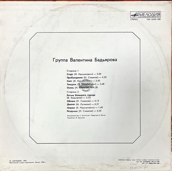 Группа Валентина Бадьярова – Музыка Для Дискотек LP