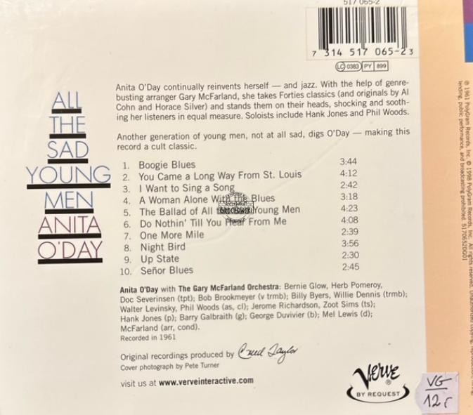 Anita O'Day, The Gary McFarland Orchestra – All The Sad Young Men CD
