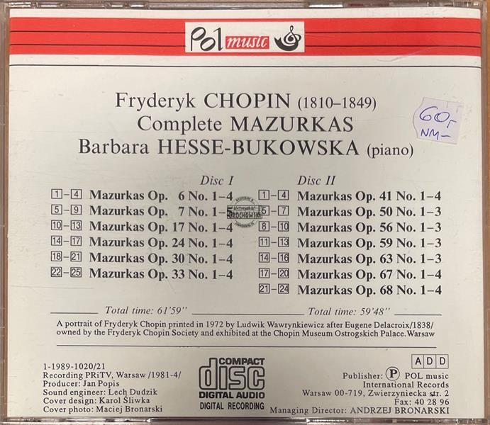 Chopin, Barbara Hesse-Bukowska – Complete Mazurkas 2CD