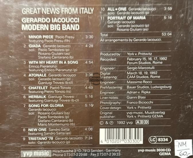 Gerardo Iacoucci Modern Big Band Featuring Paolo Fresu, Enrico Pieranunzi, Sandro Satta, Pietro Tonolo, Gianluigi Trovesi – Great News From Italy CD