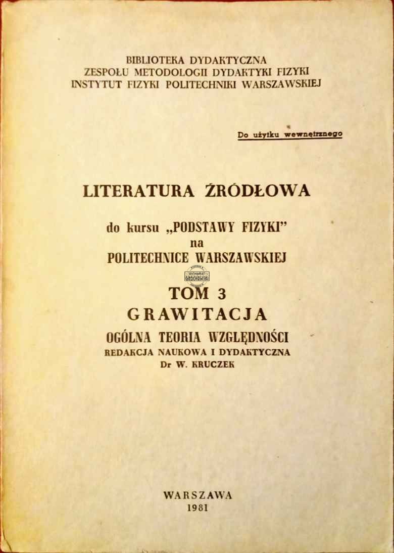 Literatura źródłowa do kursu "Podstawy Fizyki" na Politechnice Warszawskiej, tom 3. Grawitacja
