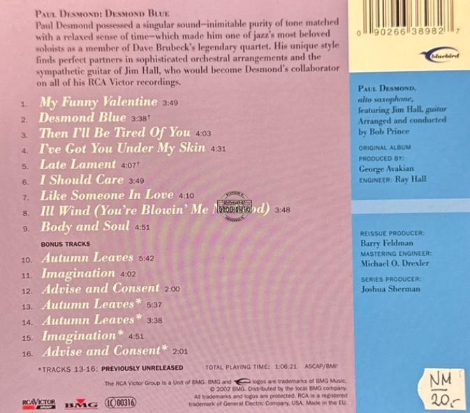 Paul Desmond With Strings – Desmond Blue CD