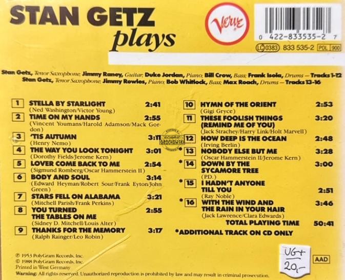 Stan Getz – Stan Getz Plays CD
