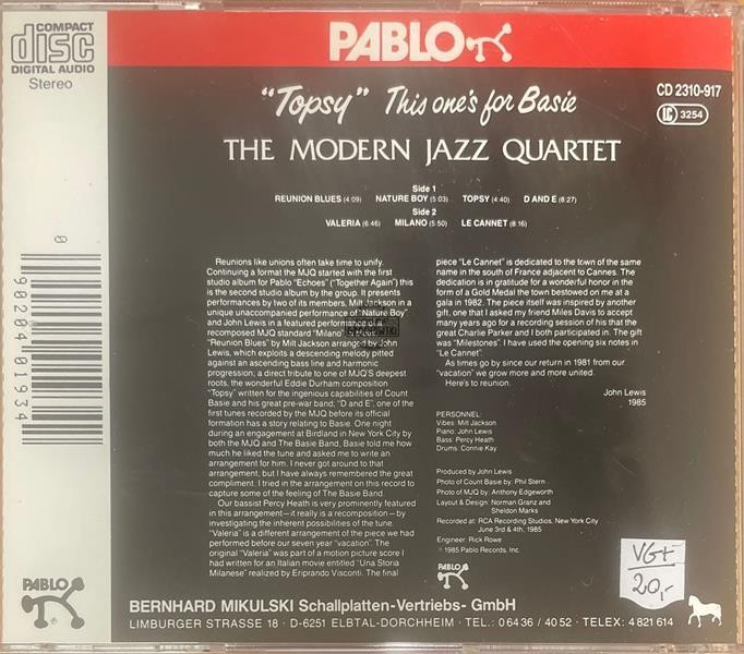 The Modern Jazz Quartet – "Topsy" This One's For Basie CD