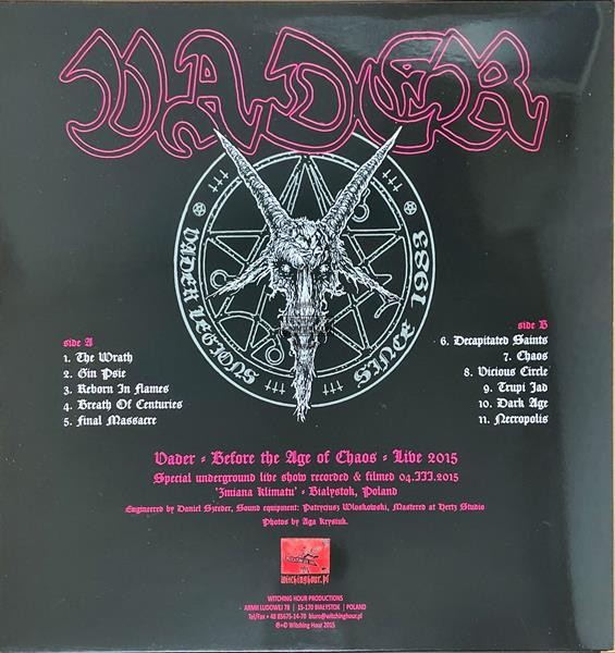 Vader – Before The Age Of Chaos - Live 2015 LP