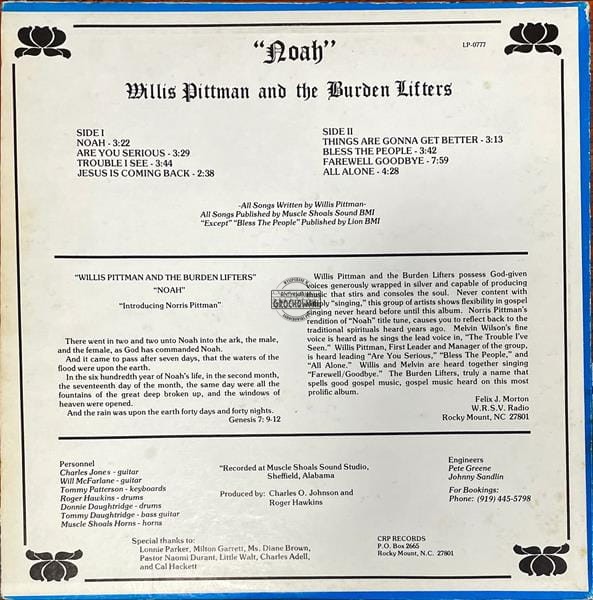 Willis Pittman And The Burden Lifters – Noah LP